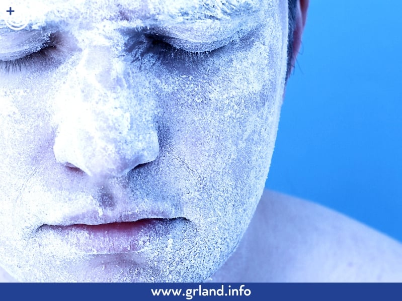 Ένα παγωμένο πρόσωπο μέσα σε ομίχλη αζώτου. Τα μαλλιά, οι βλεφαρίδες και τα φρύδια δεν θα μεγαλώσουν άλλο χιλιοστό σε εκατοντάδες χρόνια και το δέρμα δεν θα γεράσει.